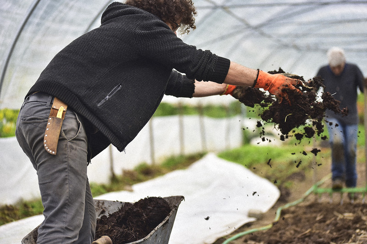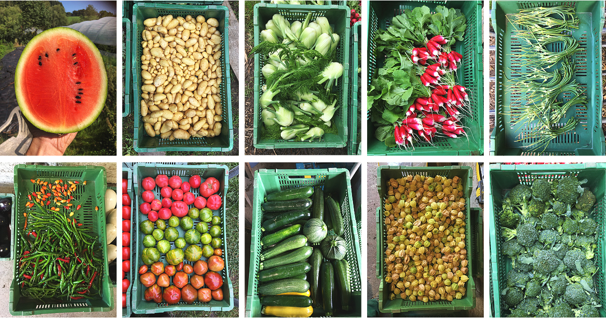 Nous produisons une grande diversité de légumes de saison dans le respect des principes de l’agriculture biologique Bourgeon, en collaboration avec la terre et tous ses habitants. Dans cet esprit, nous n’utilisons pas de tracteur et veillons à limiter au maximum les atteintes portées au sol en utilisant la grelinette. Depuis quelques années, nous avons aussi commencé à implanter des associations de cultures.